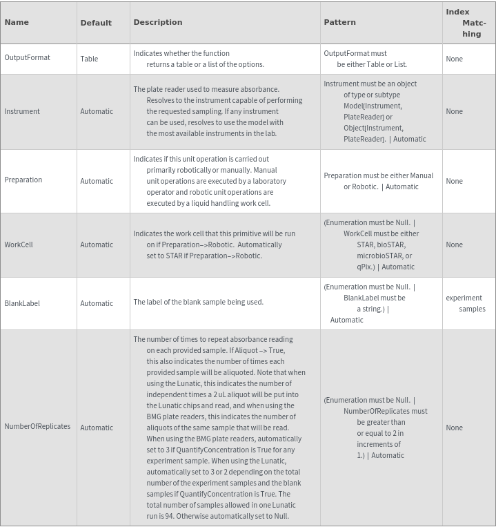 Absorbance Measurement Options