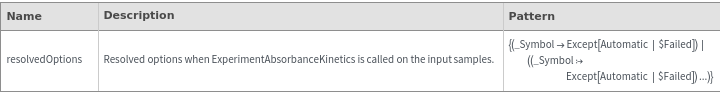 ExperimentAbsorbanceKineticsOptions[samples]resolvedOptions