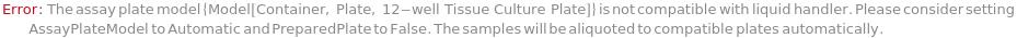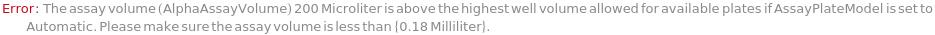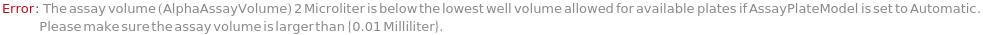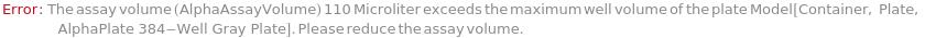 Default Calculation: Automatically set as the PreferredContainer for the AssayVolume of the sample. For plates, attempts to fill all wells of a single plate with the same model before aliquoting into the next.