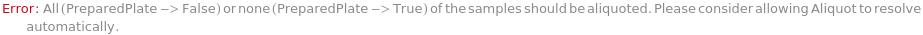 Indicates if aliquots should be taken from the SamplesIn and transferred into new AliquotSamples used in lieu of the SamplesIn for the experiment. Note that if NumberOfReplicates is specified this indicates that the input samples will also be aliquoted that number of times. Note that Aliquoting (if specified) occurs after any Sample Preparation (if specified).