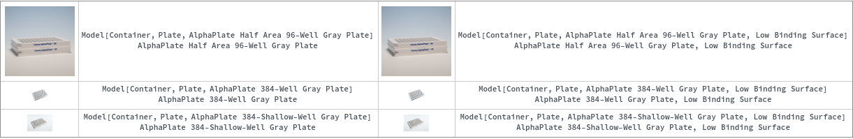 Default Calculation: Automatically set as the PreferredContainer for the Volume of the sample. For plates, attempts to fill all wells of a single plate with the same model before using another one.