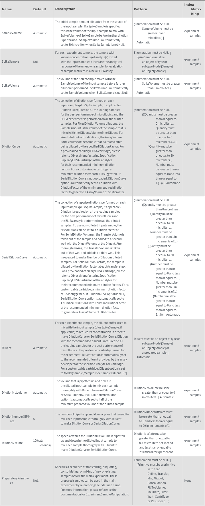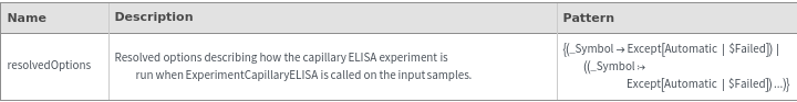 ExperimentCapillaryELISAOptions[samples]resolvedOptions