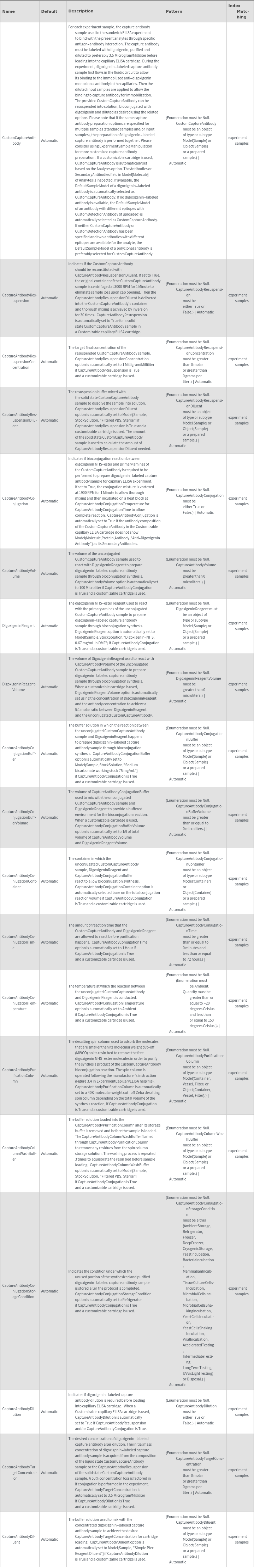 • The options returned by ExperimentCapillaryELISAOptions may be passed directly to ExperimentCapillaryELISA.