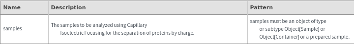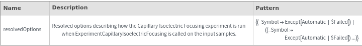 ExperimentCapillaryIsoelectricFocusingOptions[samples]resolvedOptions