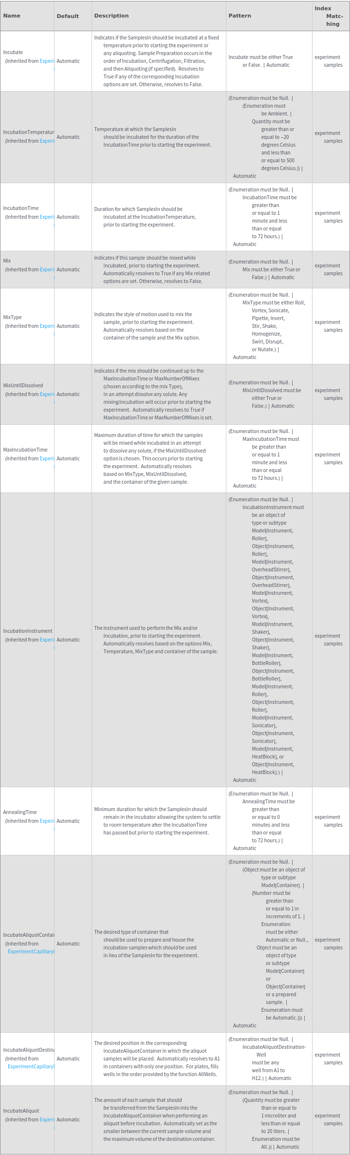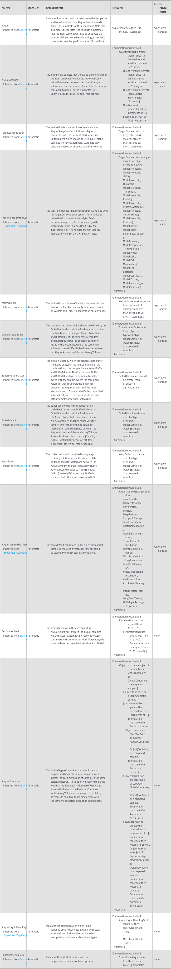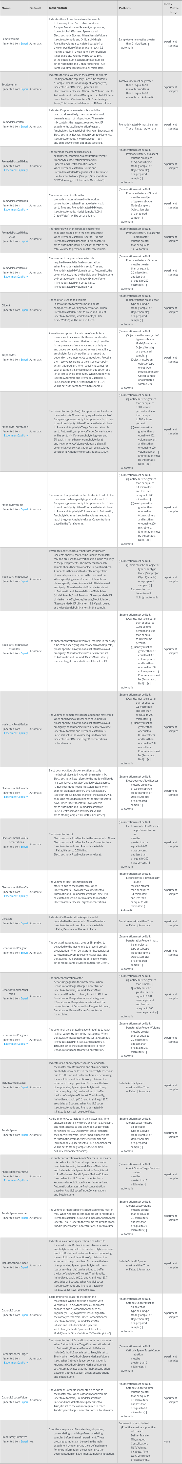 • The options returned by ExperimentCapillaryIsoelectricFocusingOptions may be passed directly to ExperimentCapillaryIsoelectricFocusing.
