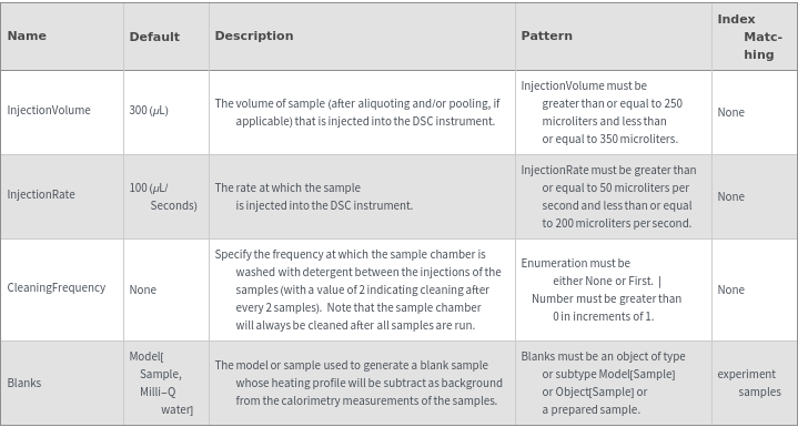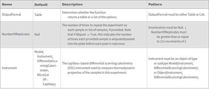 - This function returns the resolved options that would be fed to ExperimentDifferentialScanningCalorimetry if it were called on these input objects.