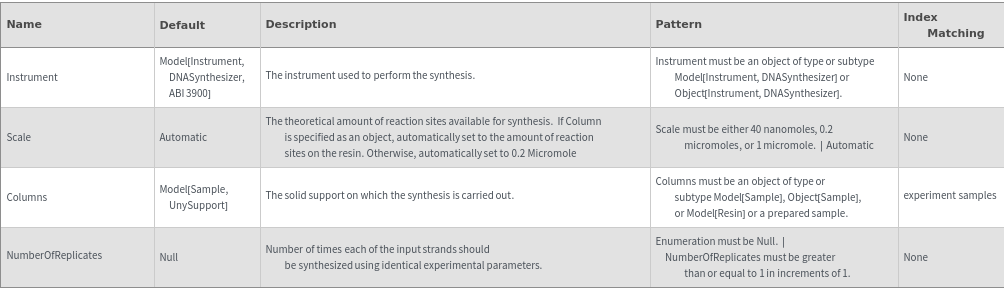 ExperimentDNASynthesisOptions[oligomerModels]⟹resolvedOptions