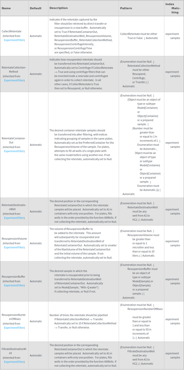 • This function returns the resolved options that would be fed to ExperimentFilter if it were called on these input objects.
