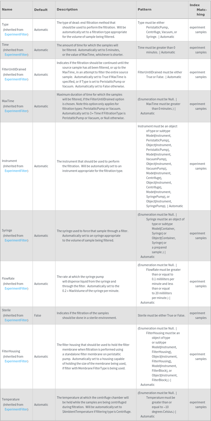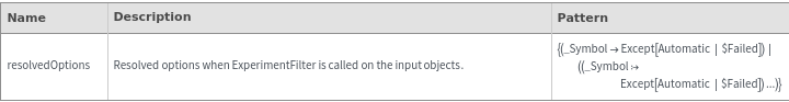 returns the resolved options for ExperimentFilter when it is called on objects.
