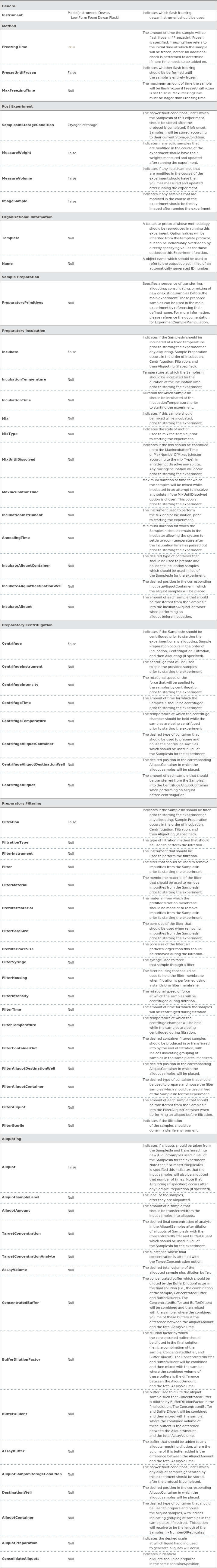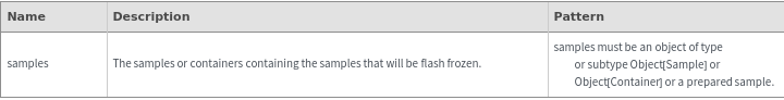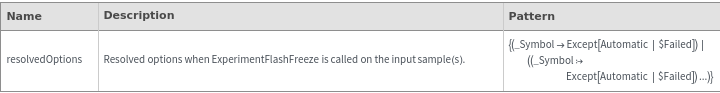 ExperimentFlashFreezeOptions[samples]⟹resolvedOptions