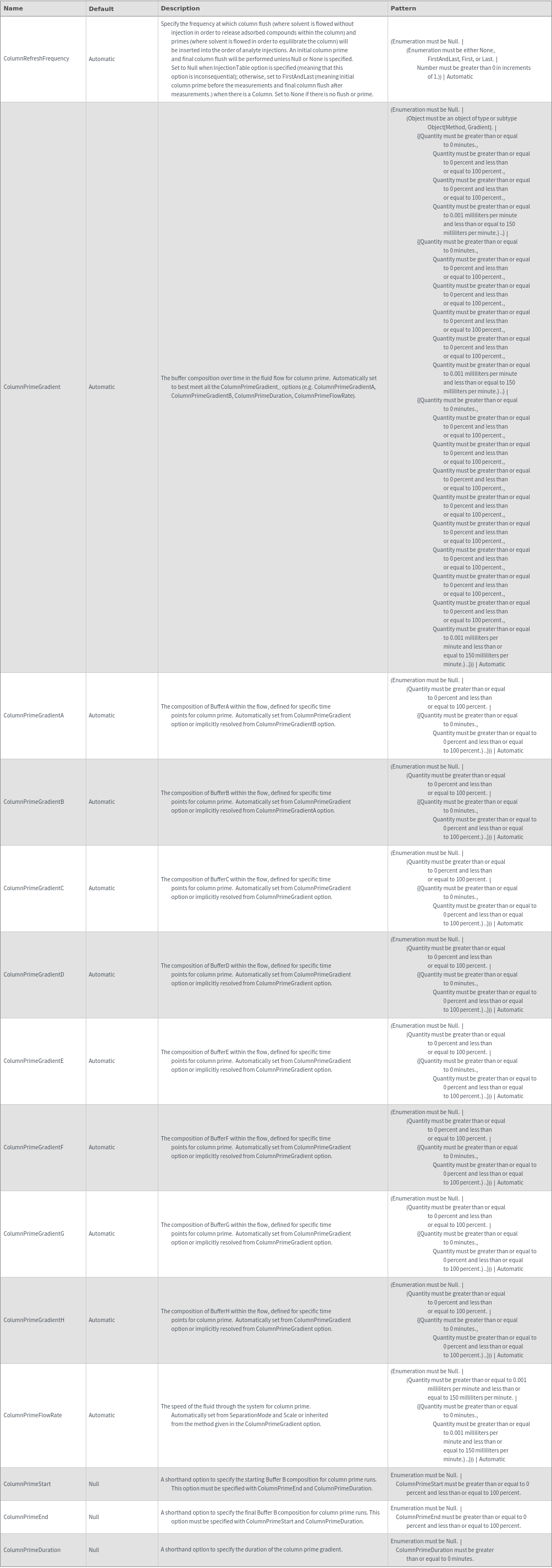 ColumnPrime Options