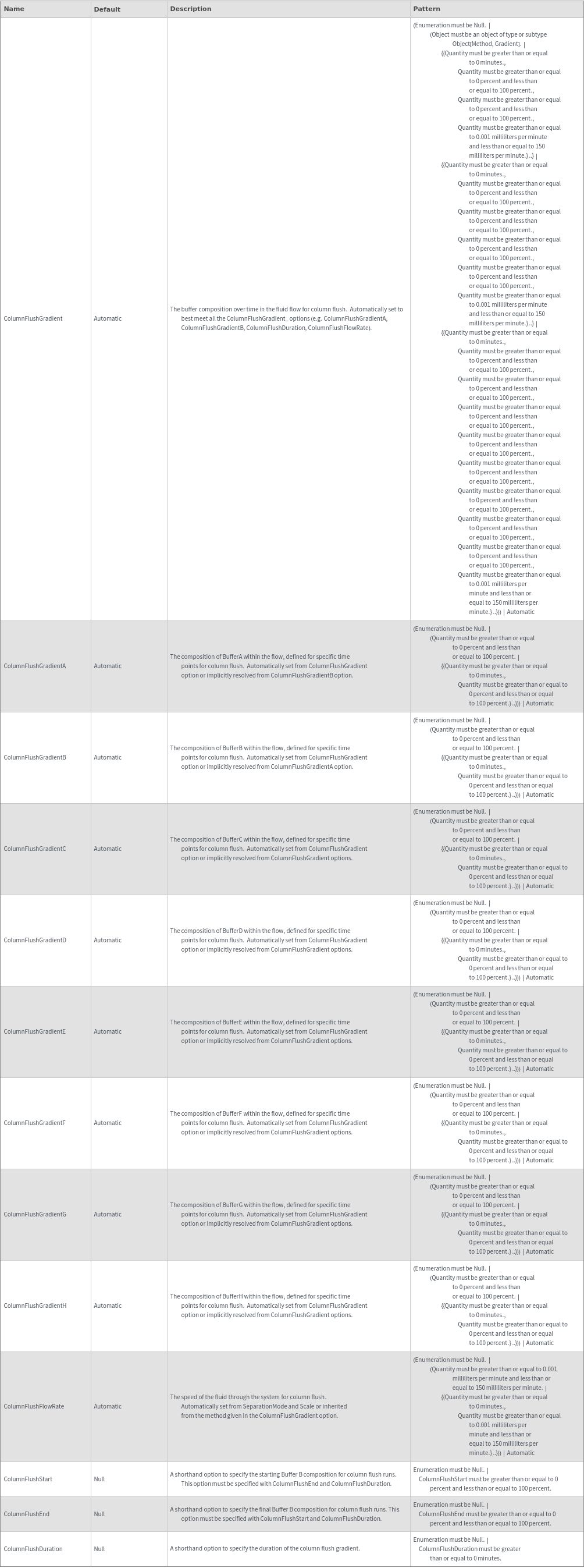 ColumnFlush Options