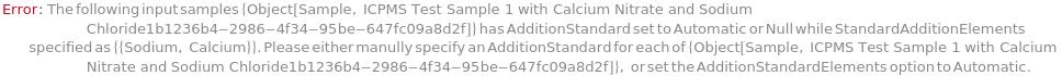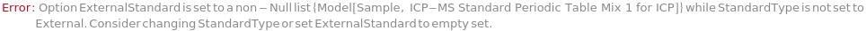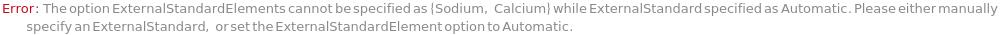 Default Calculation: Automatically set to External if any of ExternalStandard, ExternalStandardElement or StandardDilutionCurve is specified; otherwise, automatically set to StandardAddition if any of AdditionStandard, StandardAdditionElements, StandardAdditionCurve, StandardSpiledSample is specified; otherwise if QuantifyConcentration for any Elements is set to True, set to External. If all above doesn't hold, set to None.