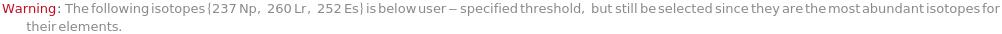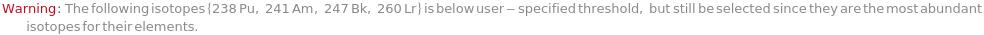 Select threshold so that isotopes whose abundance is above this value will be selected for detection besides the most abundant one. This option is only valid when Elements -> Automatic or a list of elements, will be ignored when list of isotopes is provided as entry for Elements option.