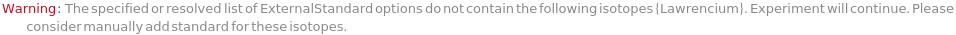 Default Calculation: Automatically set to all elements present in the input standard's Composition field. If there are no elements in the Composition and this option is unspecified, an error is thrown.