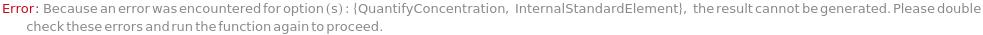 Default Calculation: Automatically set to elements matching the atomic metals that present in the molecules of the sample composition and InternalStandard composition plus Sweep. If there are no metallic elements in the Composition and this option is unspecified, automatically set to Sweep.