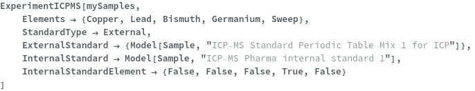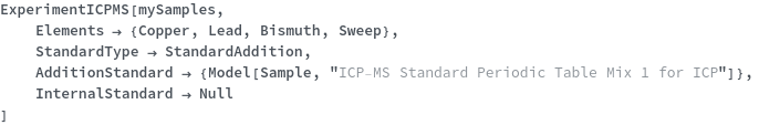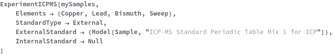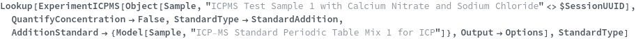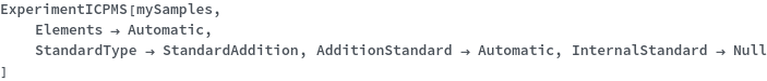 Programmatic Pattern: ((DuplicateFreeListableP[ICPMSElementP] | {({ICPMSElementP, GreaterEqualP[0*(Milligram/Liter)]} | {ICPMSElementP, GreaterEqualP[0*Micromolar]})..} | {({ICPMSNucleusP, GreaterEqualP[0*(Milligram/Liter)]} | {ICPMSNucleusP, GreaterEqualP[0*Micromolar]})..}) | Automatic) | Null