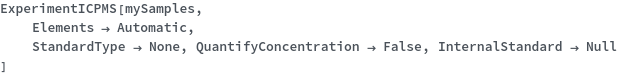 Nuclei or element to be measured by tuning the quadrupole to select the mass of the element that matches the atomic weight. When elements are selected, only the most abundant isotope and isotopes above IsotopeAbundanceThreshold (default 20%) will be quantified. If Elements is set to Sweep then a full spectrum will be acquired. Should also include elements from InternalStandard.