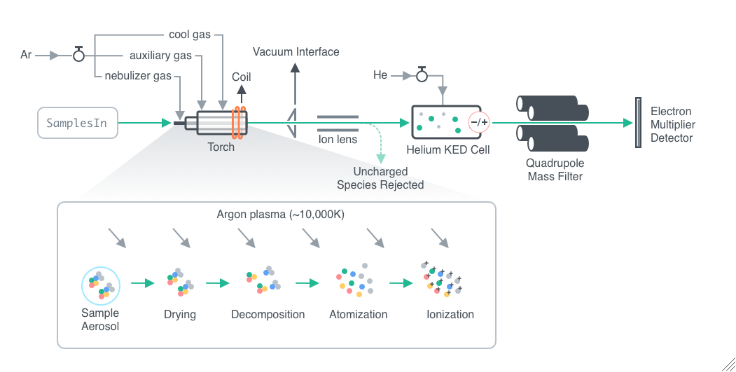 Instrument which is used to atomize, ionize and analyze the elemental composition of the input analyte.