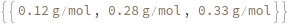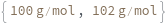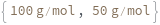 Pattern Description: Greater than or equal to 0.01 grams per mole and less than or equal to 1 gram per mole.