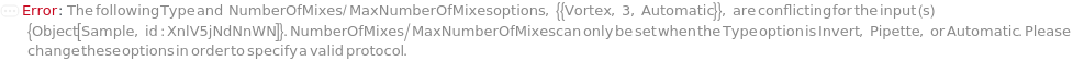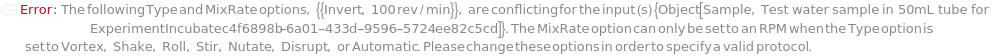 Default Calculation: Automatically sets based on the container of the sample and the Mix option. Specifically, if Mix is set to False, the option is set to Null. If MixInstrument is specified, the option is set based on the type of the Model[Instrument] or Object[Instrument] of the specified MixInstrument. If MixRate and Time are Null, when MixVolume is Null or larger than 50ml, the option is set to Invert, otherwise set to Pipette. If Amplitude, MaxTemperature, or DutyCycle is not Null, the option is set to Homogenizer. If MixRate is set, the option is set based on the type of the Model[Instrument] of the first instrument found by MixDevices that is compatible with the SamplesIn, Temperature, and MixRate.