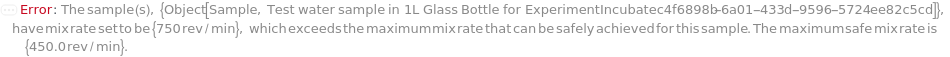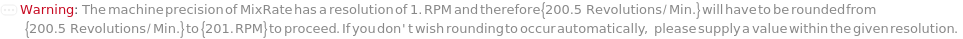 Default Calculation: Automatically set to 300 RPM for robotic preparation. For manual preparation, MixRate is set to 20% of the MaxRotationRate if MixType is Stir, or otherwise is set to the average of MinRotationRate and MaxRotationRate of the instrument.