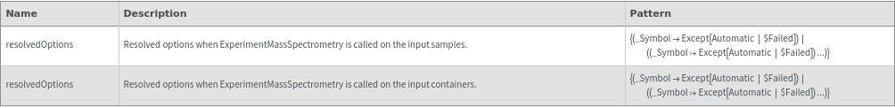 ExperimentMassSpectrometryOptions[containers]resolvedOptions