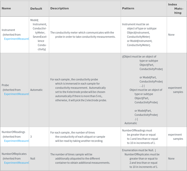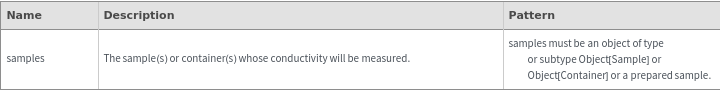ExperimentMeasureConductivityOptions[samples]resolvedOptions