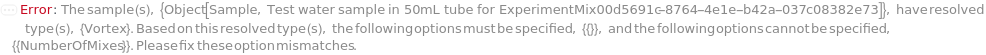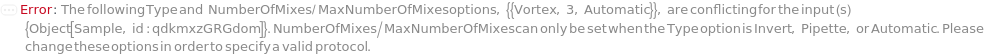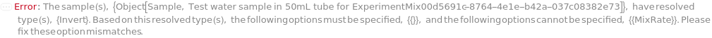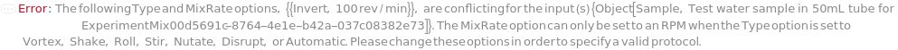 Default Calculation: Automatically sets based on the container of the sample and the Mix option. Specifically, if Mix is set to False, the option is set to Null. If MixInstrument is specified, the option is set based on the type of the Model[Instrument] or Object[Instrument] of the specified MixInstrument. If MixRate and Time are Null, when MixVolume is Null or larger than 50ml, the option is set to Invert, otherwise set to Pipette. If Amplitude, MaxTemperature, or DutyCycle is not Null, the option is set to Homogenizer. If MixRate is set, the option is set based on the type of the Model[Instrument] of the first instrument found by MixDevices that is compatible with the SamplesIn, Temperature, and MixRate.