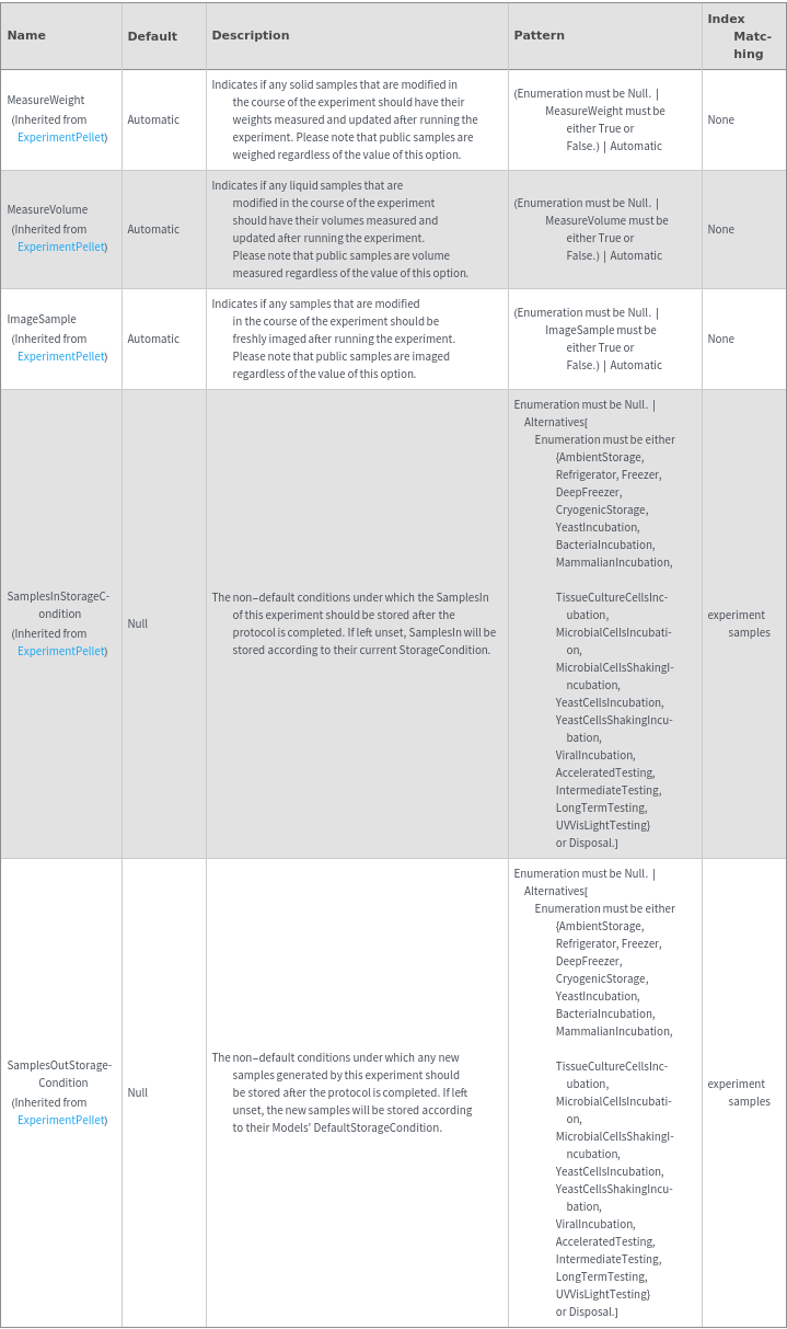 ExperimentPelletOptions[Samples]ResolvedOptions