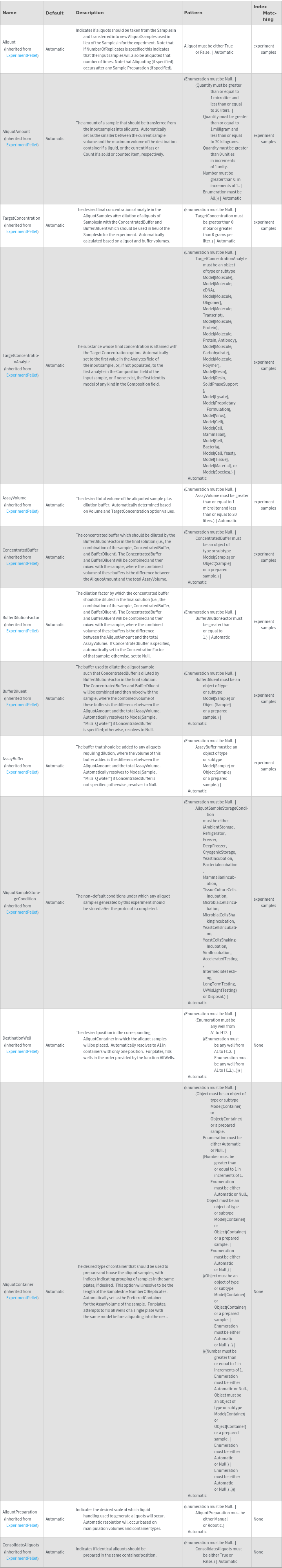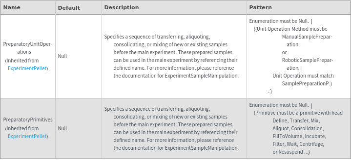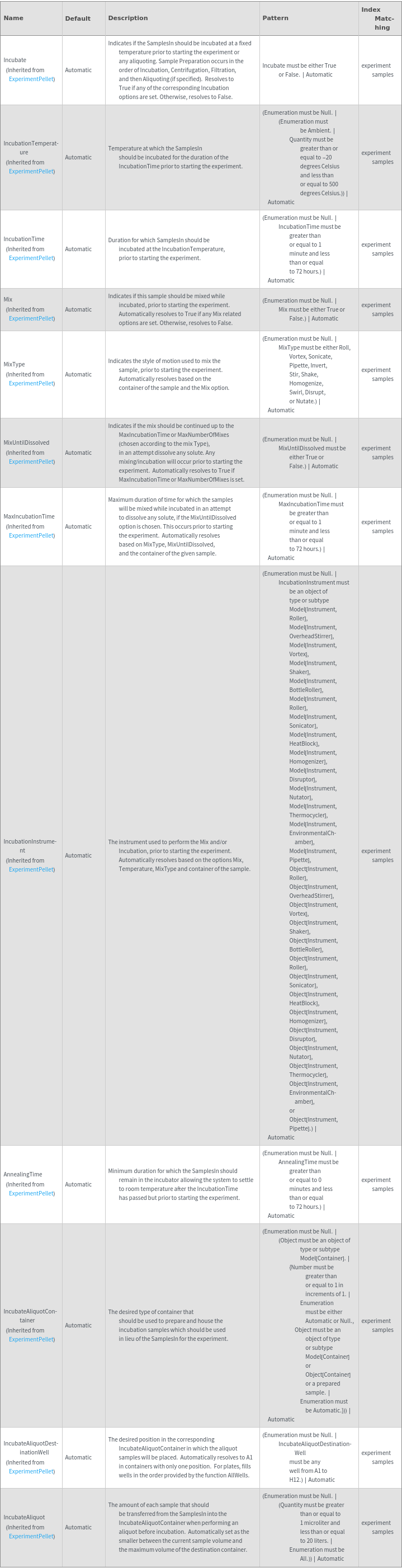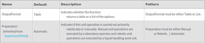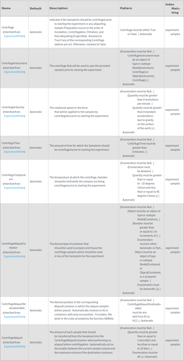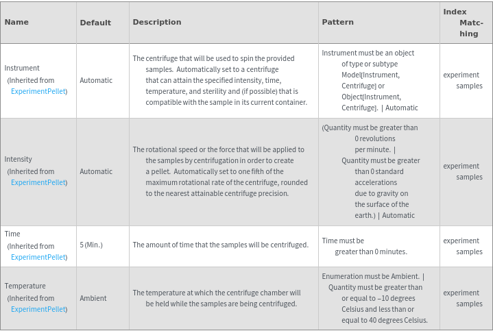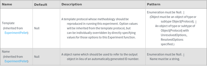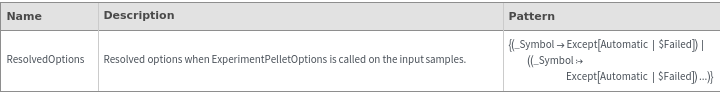 • The options returned by this function may be passed directly to ExperimentPellet.