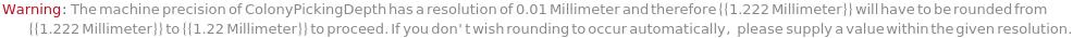 If a ColonyPickingDepth with a greater precision than 0.01 Millimeter is given, it is rounded: