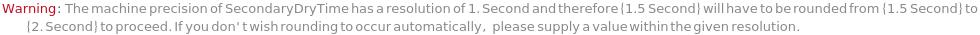 If a SecondaryDryTime with a greater precision than 1 Second is given, it is rounded: