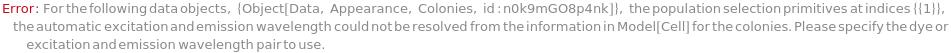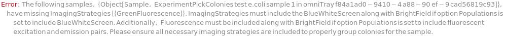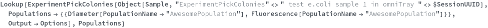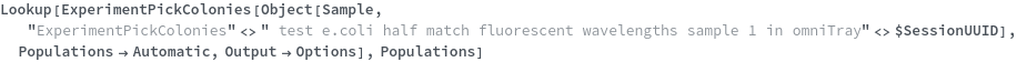 Default Calculation: If the Model[Cell] information in the sample object matches one of the fluorescent excitation and emission pairs of the colony picking instrument, Populations is set to Fluorescence. Otherwise, Populations is set to All.
