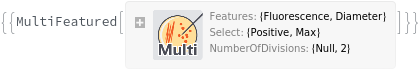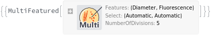 The characteristics selected from Diameter, Regularity, Isolation, Circularity, BlueWhiteScreen, and Fluorescence of the colony by which the population will be isolated. For example, if Features is set to {Isolation, Diameter}, the colonies that are both larger than the median colony and more fluorescing than the median colony will be grouped into a population. More than one feature must be specified, otherwise the individual feature Unit Operation should be used. Colonies that match all features in the MultiFeatured unit operation will be included in the population.