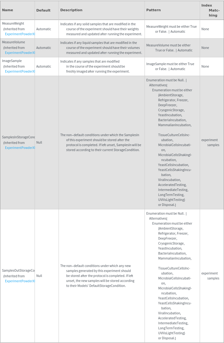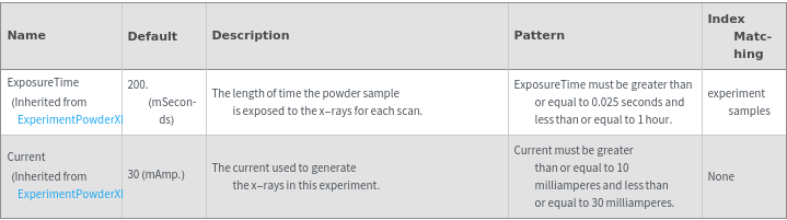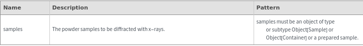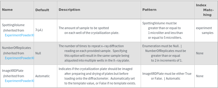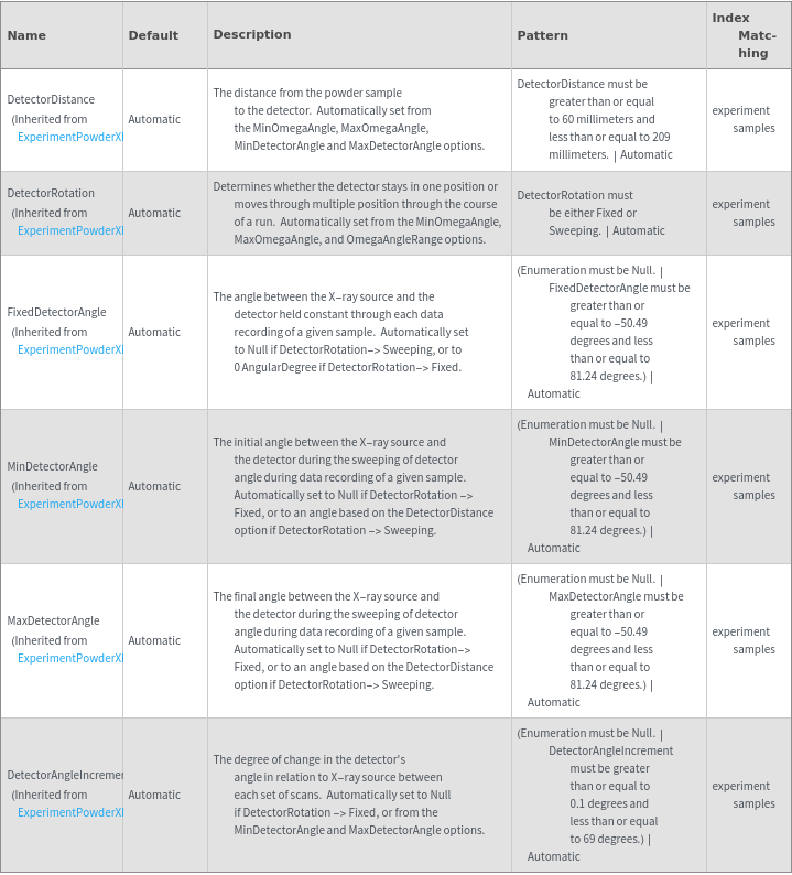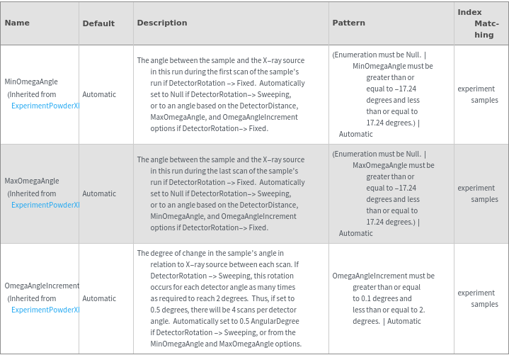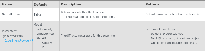 • The options returned by this function may be passed directly to ExperimentPowderXRD.