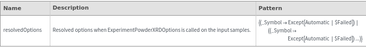 ExperimentPowderXRDOptions[samples]resolvedOptions