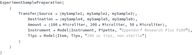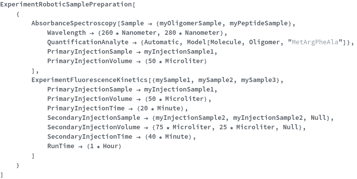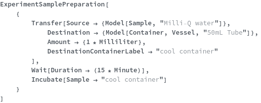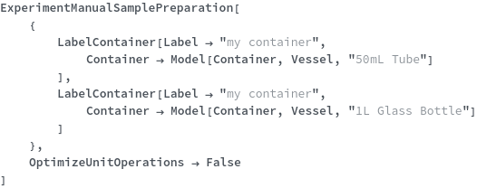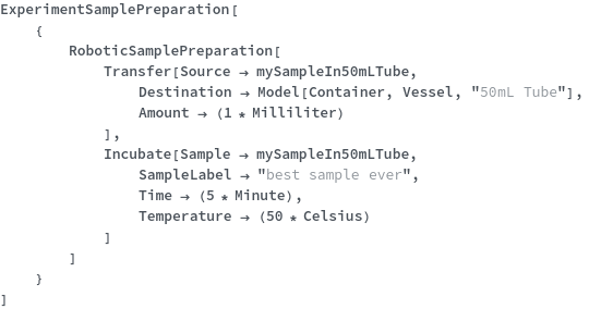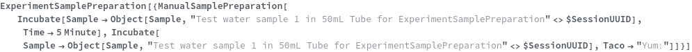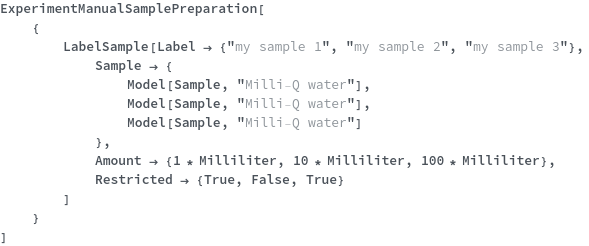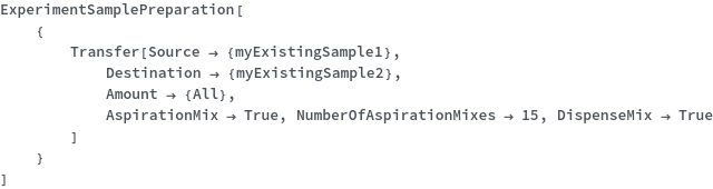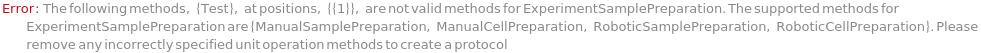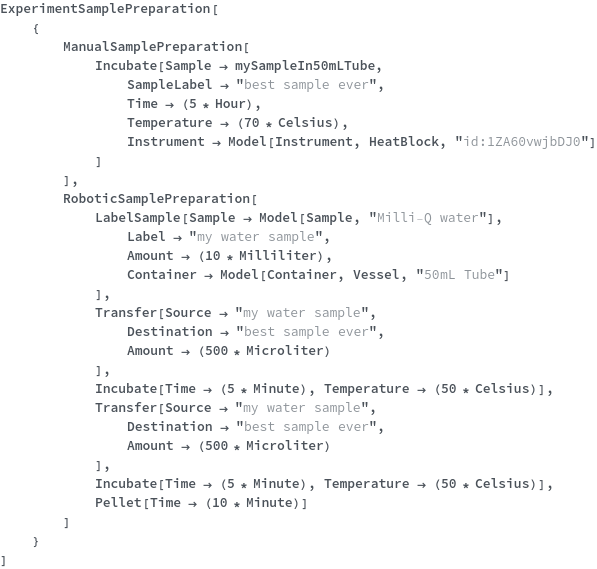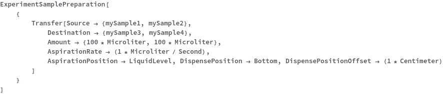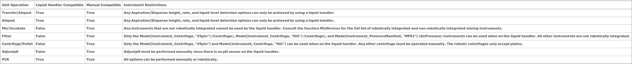 The ExperimentManualSamplePreparation/RoboticSamplePreparation functions can be used instead if you want all of the unit operations to occur manually or robotically. Note that in order for multiple groups of manual/robotic unit operations to be used, the ExperimentSamplePreparation function must be called so that it can generate a script that chains together these two groups. It is therefore recommended to call ExperimentSamplePreparation over these two other functions: