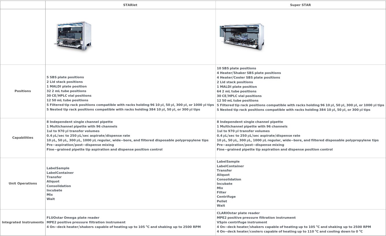 ExperimentRoboticSamplePreparation supports all plate reader experiments that occur on the Model[Instrument, PlateReader, "FLUOstar Omega"] (AbsorbanceSpectrosocopy, AbsorbanceIntensity, AbsorbanceKinetics, LuminescenceIntensity, LuminescenceKinetics, FluorescenceIntensity, and FluorescenceKinetics). The CLARIOstar is integrated with the STAR liquid handlers. If injection samples are used across plate reader unit operations, the injection samples will be consolidated into the same slot in the plate reader unit operation for seamless robotic operation: