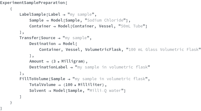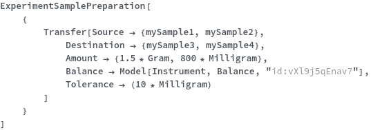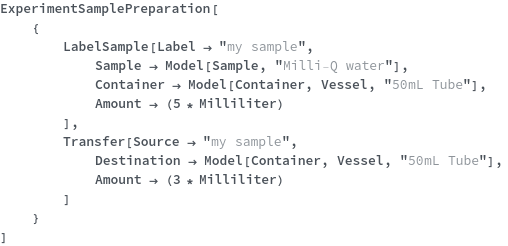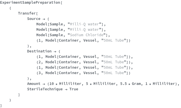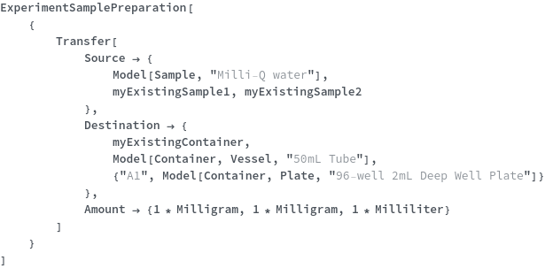 ExperimentSamplePreparation allows for the incubation, mixing, centrifugation, filtration, pelleting, pH ajustment, and other general preparation of samples to be performed in-line with volume and mass transfers (via LabelSample, LabelContainer, and Transfer). ExperimentSamplePreparation will group liquid-handler compatible unit operations in a Object[Protocol, RoboticSamplePreparation] and manual unit operations in a Object[Protocol, ManualSamplePreparation]. If multiple back-to-back groups of manual and/or liquid handler runs are necessary, a script will be created to run the grouped unit operations. Liquid samples with volumes 1 µL - 50mL can be transferred on a robotic liquid handler. Liquids and solids can be transferred using standard lab techniques at scales up to 20L or 50 kg.