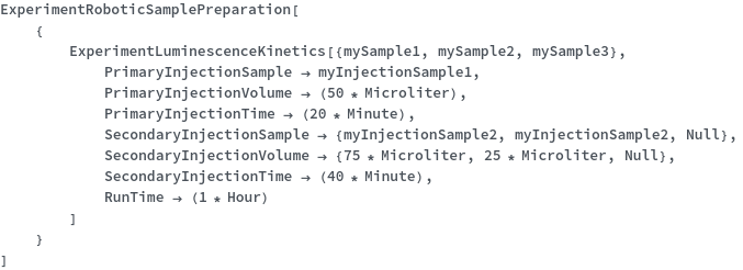 ExperimentRoboticSamplePreparation supports all plate reader experiments that occur on the Model[Instrument, PlateReader, "CLARIOstar"] (AbsorbanceSpectrosocopy, AbsorbanceIntensity, AbsorbanceKinetics, LuminescenceSpectrosocopy, LuminescenceIntensity, LuminescenceKinetics, FluorescenceSpectrosocopy, FluorescenceIntensity, FluorescenceKinetics, and Alphascreen). The CLARIOstar is integrated with the STAR liquid handlers as well as the bioSTAR and microbioSTAR liquid handlers in ExperimentRoboticCellPreparation. If injection samples are used across plate reader unit operations, the injection samples will be consolidated into the same slot in the plate reader unit operation for seamless robotic operation: