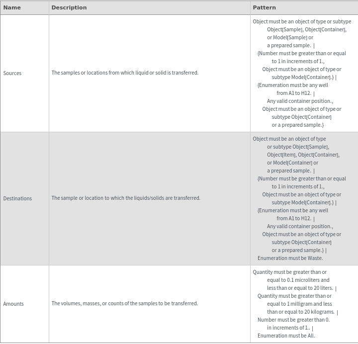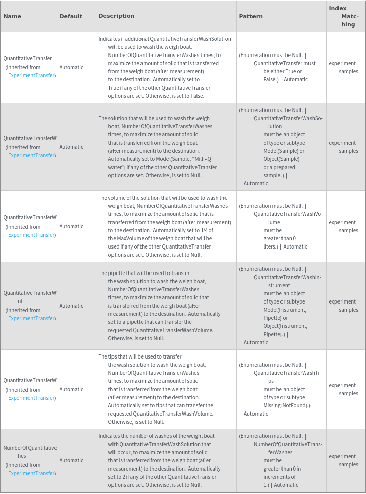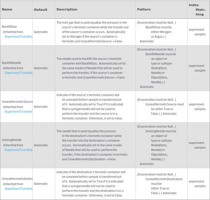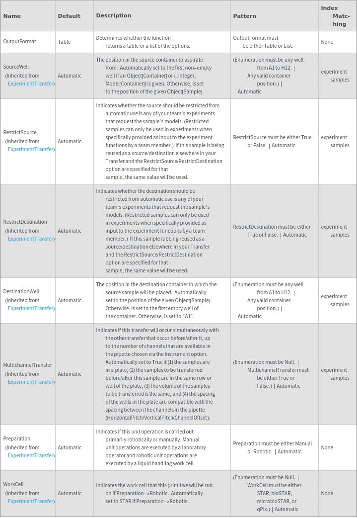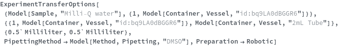 ExperimentTransferOptions[Sources, Destinations, Amounts]⟹ResolvedOptions