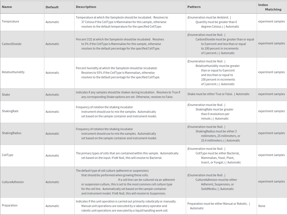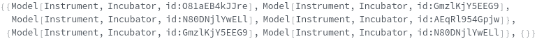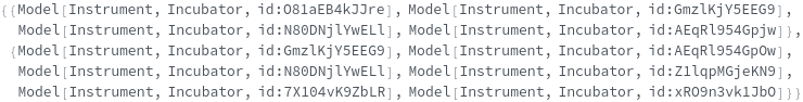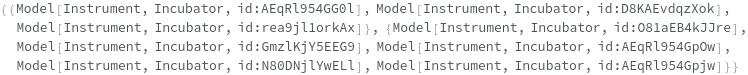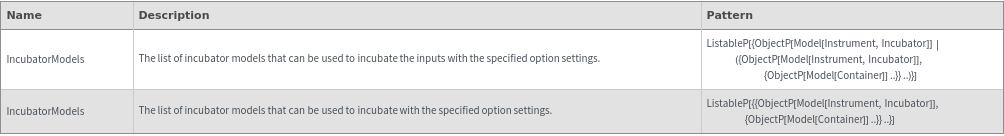 returns a list of cell incubator model(s) can be used to incubate with the specified option settings.
