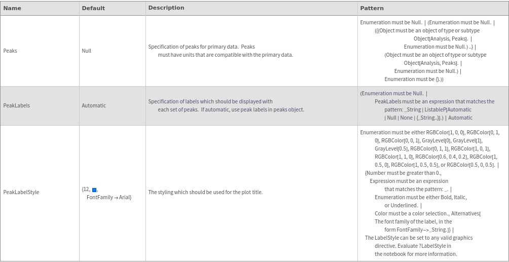 Peaks Options