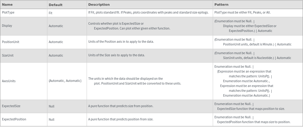 • If Display->Automatic and both functions are specified, ExpectedSize will be displayed