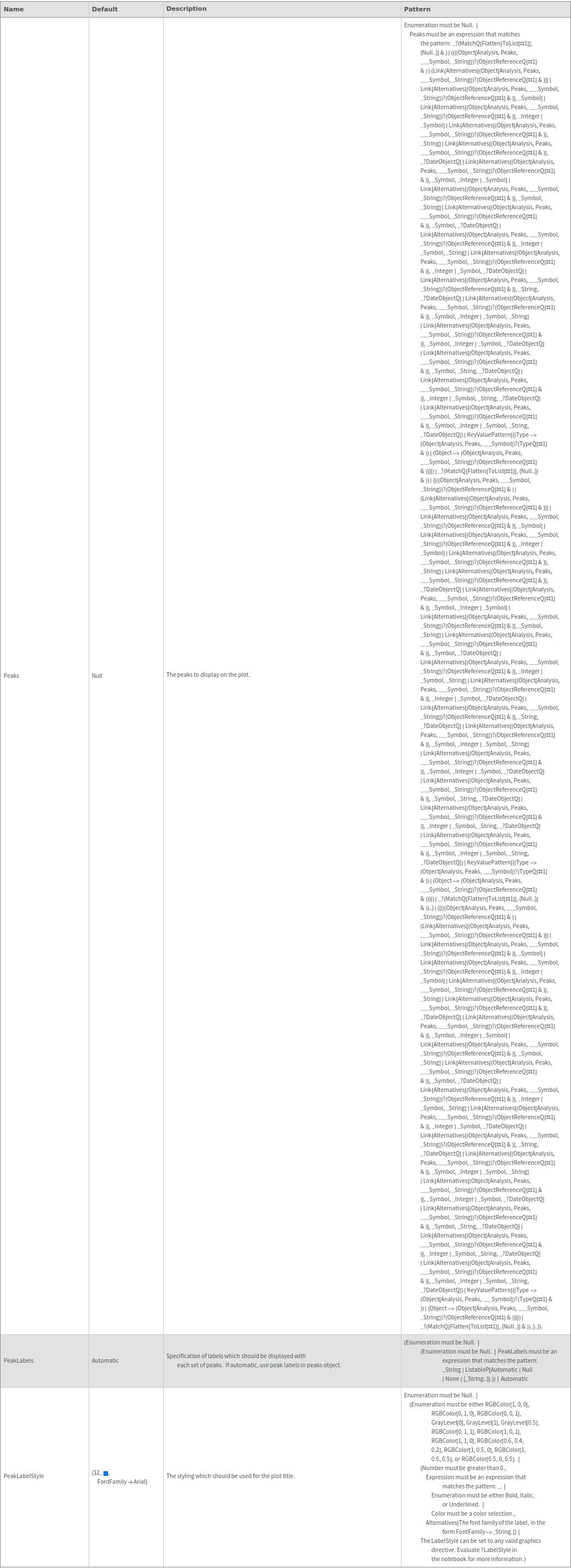 Display additonal information, here Peaks, PeakWidths, Intensity: