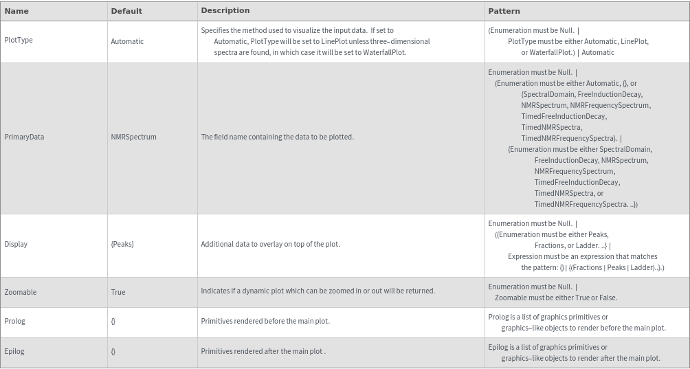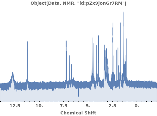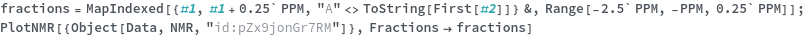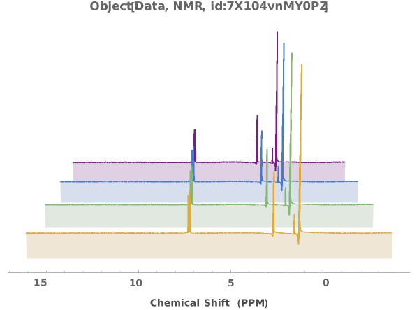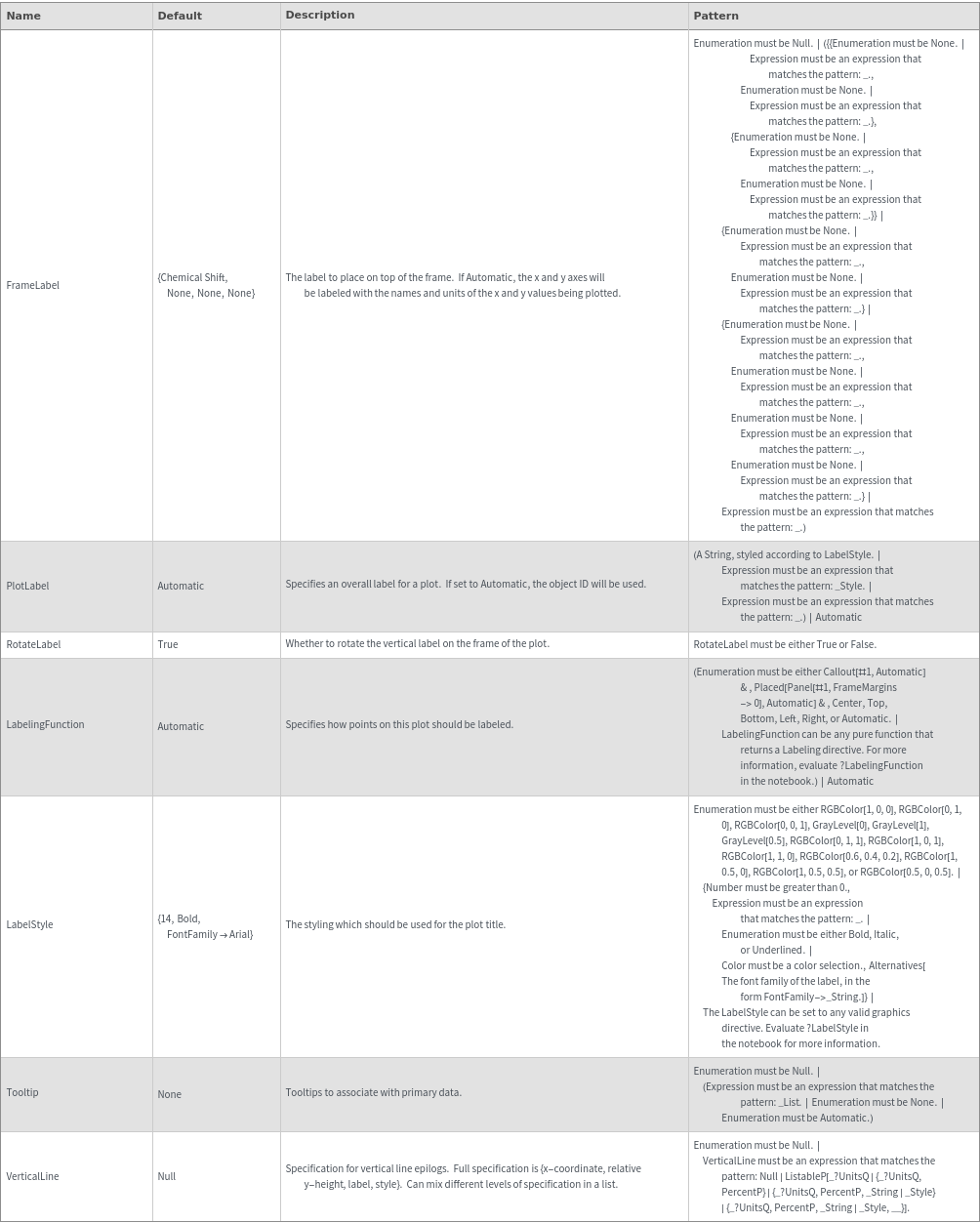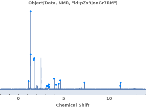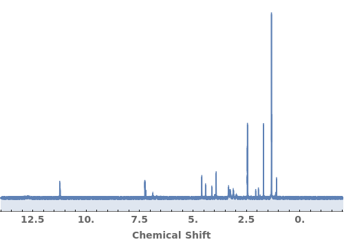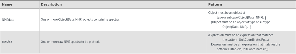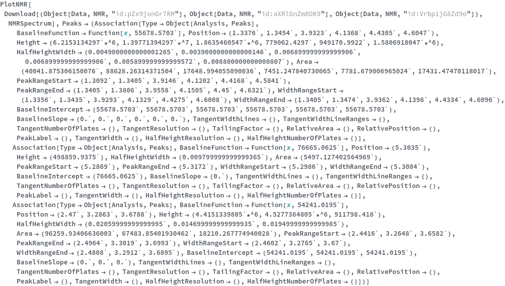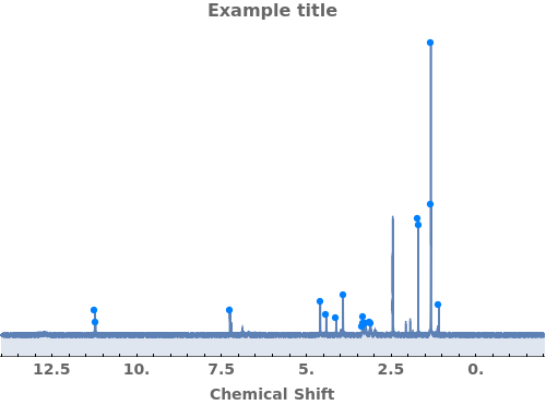 • NMR spectra are traditionally displayed in reverse x-axis form, however the option for PlotRange uses the standard {{xmin,xmax},{ymin,ymax}} format.