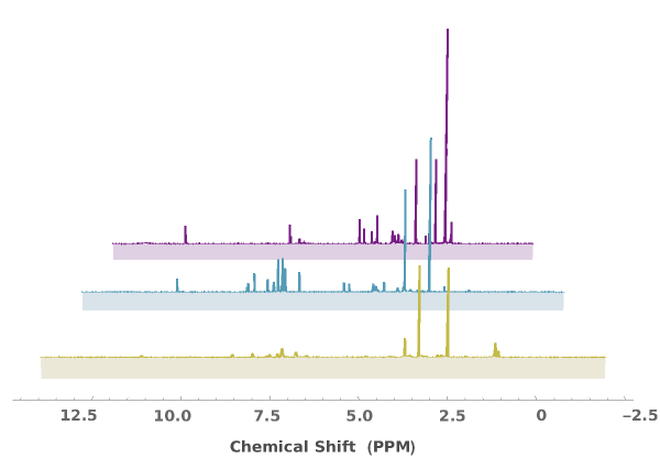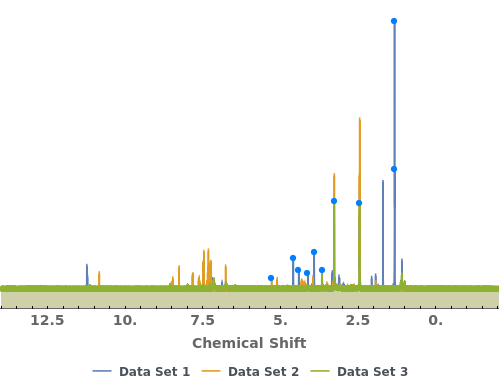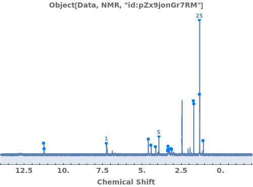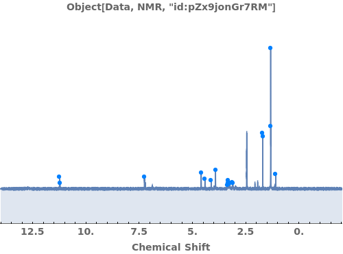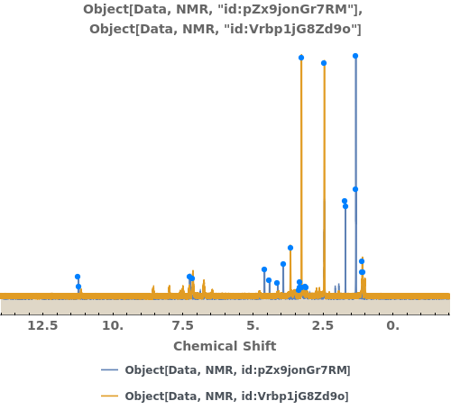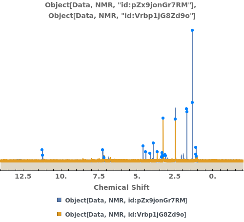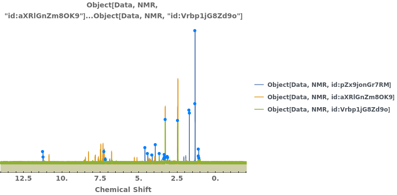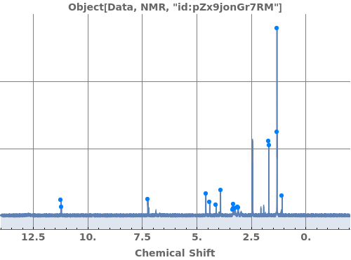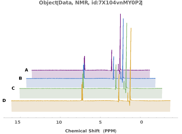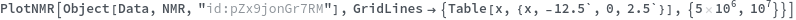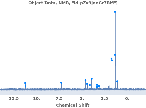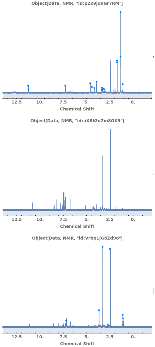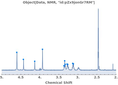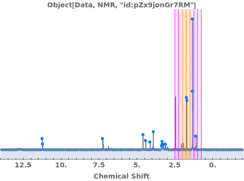 • NMR spectra are traditionally displayed in reverse x-axis form, however the option for PlotRange uses the standard {{xmin,xmax},{ymin,ymax}} format.