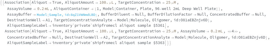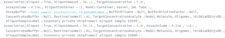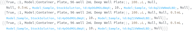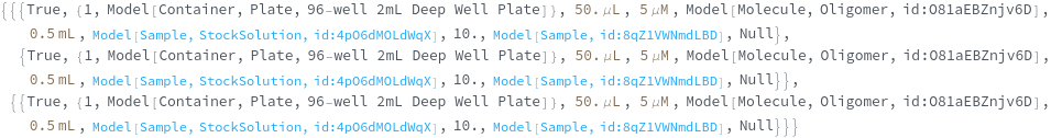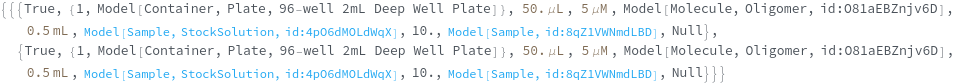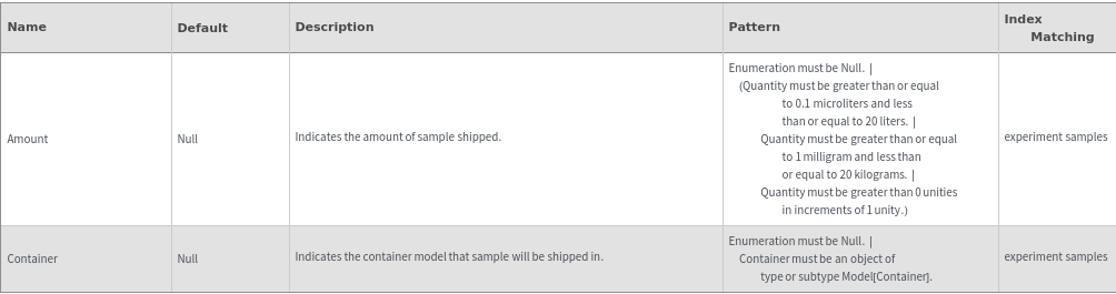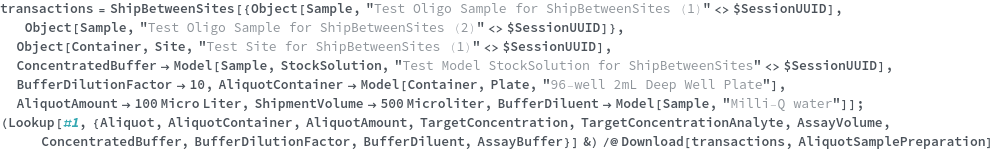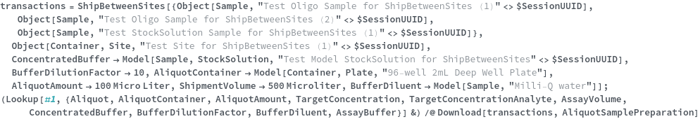 • When called on Model[Item], Model[Container] or Model[Sample], each requested items is given a unique transaction such that it can be fulfilled at the appropriate site.