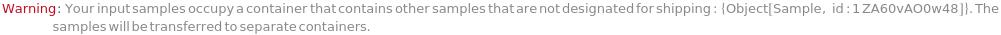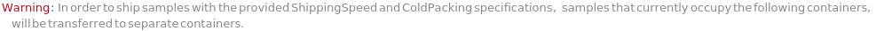 If samples from the same container are specified with different ShippingSpeed options, a warning will be given stating that the samples will be transferred to separate containers: